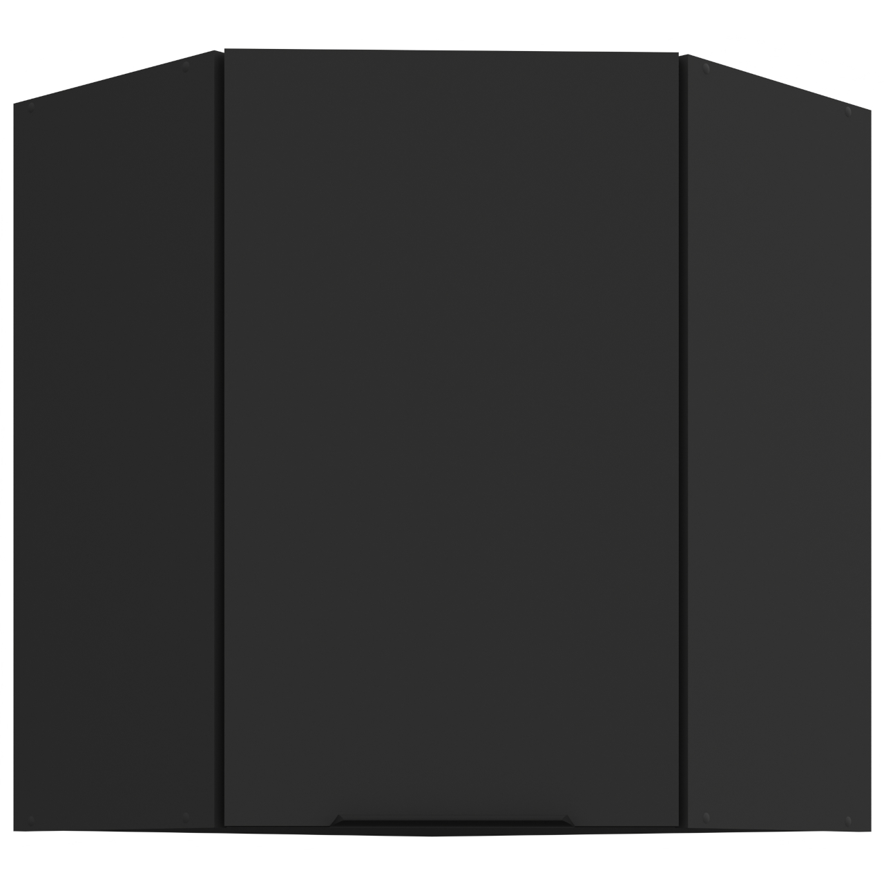 Innenraum des Schranks in weiß. Der Schrank hat zwei Einlegeböden. Die griffbohrungen sind blind gebohrt. Tür im Winkel montiert 45°. |