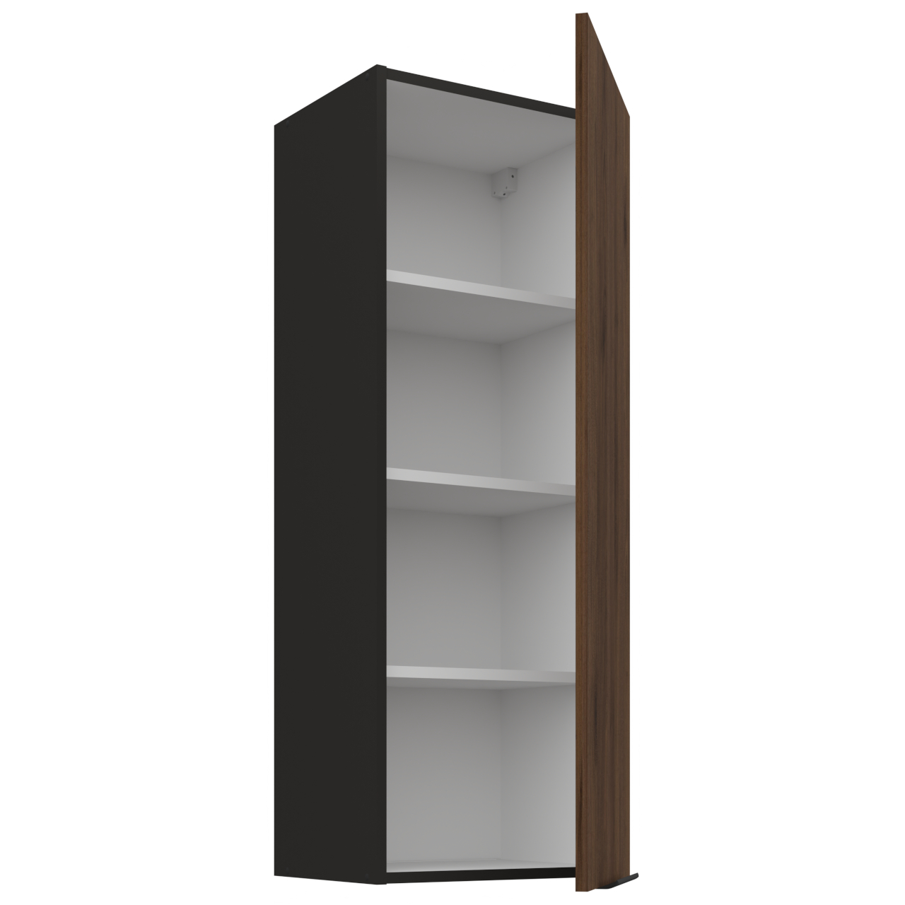 Innenraum des Schranks in weiß. Der Schrank hat drei Einlegeböden. |