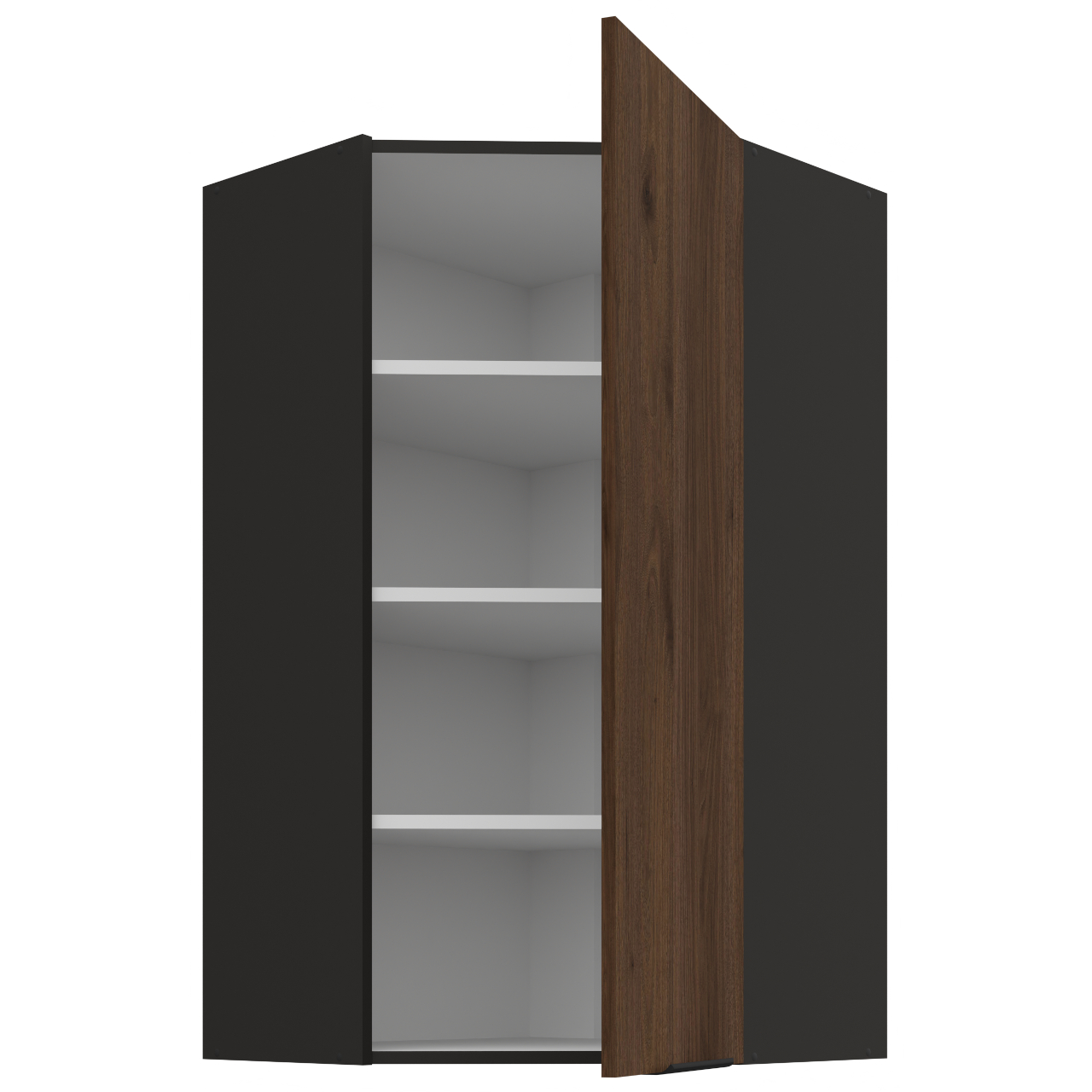 Innenraum des Schranks in weiß. Der Schrank hat drei Einlegeböden. |